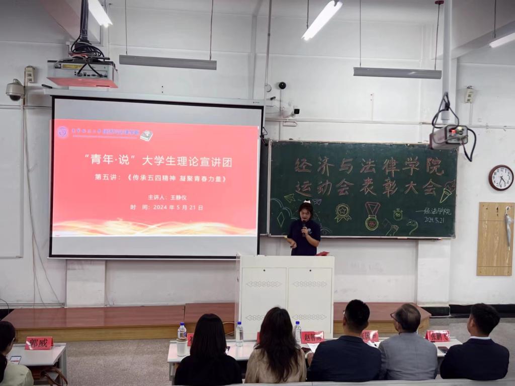 5月21日,經(jīng)法學院于博學樓C102開展“青年·說”大學生理論宣講。此次宣講由經(jīng)法學院“青年·說”大學生理論宣講團成員、分團委副書記兼青年媒體中心負責人王靜儀擔任主講人,經(jīng)法學院近350名師生參加了本次宣講會。