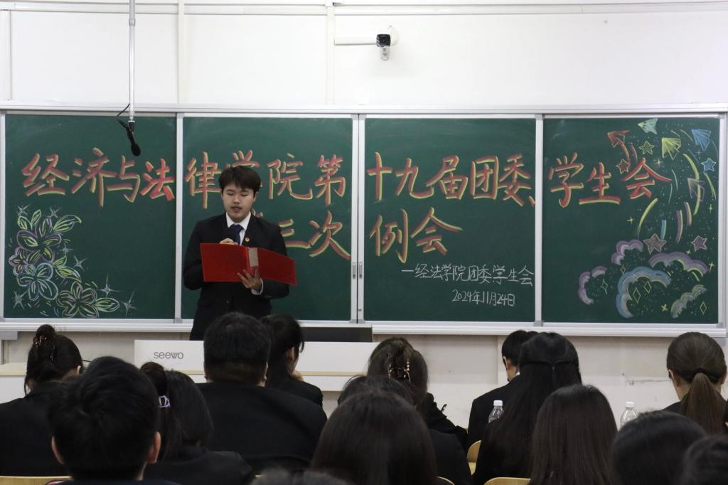 11月24日,經法學院于博學樓c413召開第十九屆團委、學生會第三次例會。會議由學院學生會執行主席兼辦公室負責人趙心豪主持,第十九屆團委、學生會全體團學骨干參加了本次會議。