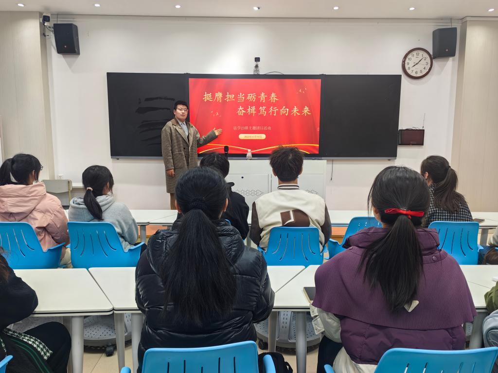 為深入挖掘青年擔當精神內涵,培養新時代有為青年和遼寧新時代“六地”奮斗者,12月16日,經法學院組織法學23班團支部開展“挺膺擔當礪青春,奮楫篤行向未來”主題團日活動。此活動特別邀請了學院團委副書記張鵬飛老師蒞臨指導,法學23團支部共計40名團員和青年參與其中。
