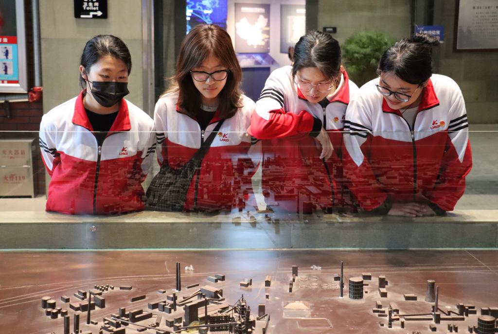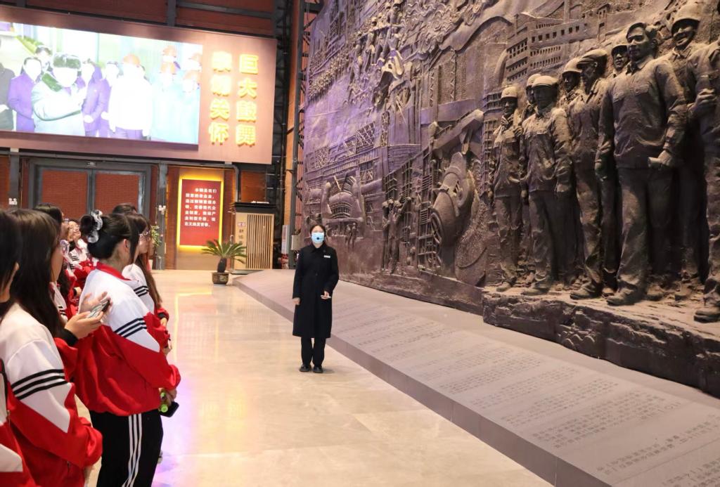 活動當日,師生共同參觀鞍鋼博物館。博物館講解員從館內的巨幅畫雕講起,依次向大家介紹“鋼鐵搖籃”“火紅年代”等11個主題展區,她生動地講述了鞍鋼從建國前在艱難困苦中篳路藍縷、艱苦創業,到逐步成長為國家鋼鐵工業堅實支柱的發展歷程。同學們在參觀過程中,全神貫注地凝視著每一件展品,仔細閱讀著每一段文字說明。同學們從一件件帶著歲月痕跡、略顯斑駁的實物展品,到一幅幅珍貴無比的歷史照片中,真切感受到了鞍鋼人在不同歷史時期所展現的艱苦奮斗、勇于創新的精神品質。