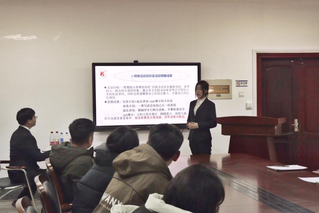 答辯過程中,各團隊結合PPT內容從活動背景、活動目的、宣傳效果等方面對實踐成果進行展示,表達了對實踐經歷和答辯內容的深入思考以及團隊見解,條理清晰,邏輯縝密。在實踐過程中,各團隊實踐形式多樣、實踐內容豐富、實踐成果豐碩,圍繞學校的辦學理念、教學成果、師資力量等進行宣傳,展示了遼科大豐碩的育人成果與鮮明的辦學特色,激發了高中學子對遼科大的濃厚興趣,更點燃了高中學子的學習熱情,成功構筑起高中與大學的交流橋梁。最后,張鵬飛作總結發言,他首先肯定了同學們在本次社會實踐中所取得的成果,并對同學們開展活動中存在的問題提出了改進建議,同時指出,“把我的大學帶回母校”寒假社會實踐活動將大學生社會實踐與招生宣傳工作有機融合,既鍛煉了學生的綜合能力,也有利于提升學校招生宣傳的廣度、深度和溫度。他表示,希望各團隊能繼續保持對社會實踐及宣傳美好科大的熱情,在火熱實踐中綻放青春絢麗之花。