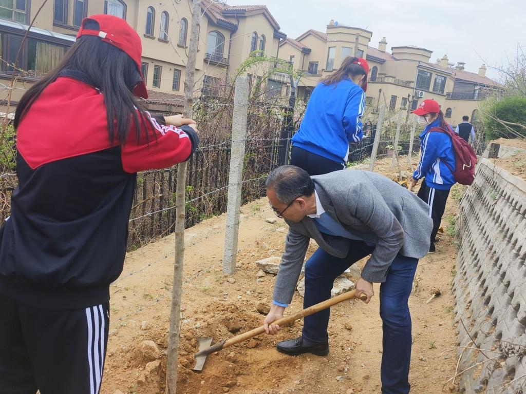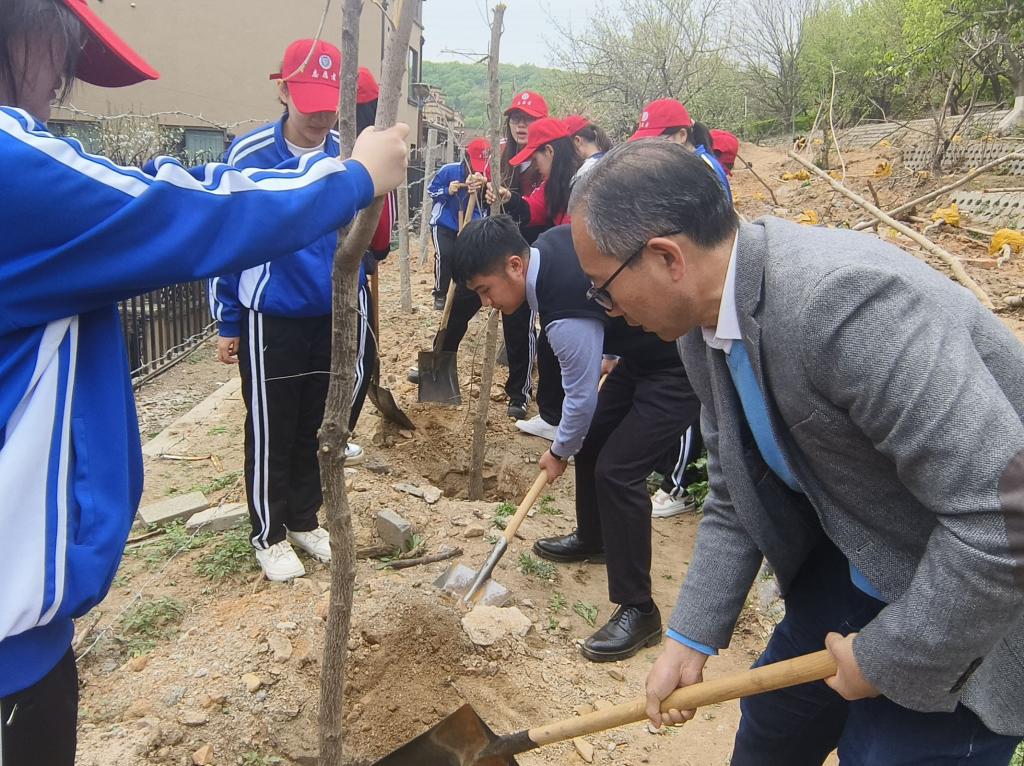 到達植樹地點后,同學們在老師的帶領下迅速分組并井然有序地開啟植樹活動。大家揮鍬挖土、扶苗培土、夯苗澆水……各個環節銜接有序,春風輕拂,同學們的熱情如春日暖陽般熾熱。大家默契配合,勁兒往一處使、汗往一處流,一派熱火朝天、生機盎然的勞動景象,彰顯著青年學子團結、互助、友愛的勞動精神。經過老師和學生的共同努力,近100棵樹苗挺立在了這片充滿生機的熱土上,承載著大家的希望,為城市增添了新的活力。植樹過后,學院分團委志愿服務中心工作人員李澤鈺為大家講述植樹活動的意義。她提到,植樹不僅可以提高空氣質量、調節氣候,而且可以減少噪聲污染,在改善生態環境方面發揮著至關重要的作用。讓大家充分認識到小小行動可以為社會鑄就大大的溫暖,讓地球家園更加美好。隨后,學院團委副書記張鵬飛表示,青年一代已經接過歷史的接力棒,更應在努力學好專業知識的同時,進一步提升生態環保意識和植綠護綠的決心,為促進人與自然和諧共生貢獻青春力量。最后,學院黨委副書記張國華作總結發言。他首先肯定了同學們在植樹活動中的表現,并表示,植樹活動是一項充滿意義與價值的環保行動,希望大家在日后能夠帶動更多同學參與到養綠護綠行動中來,用實實在在的行動踐行“綠水青山就是金山銀山”的理念,建設更加美好的生活環境。