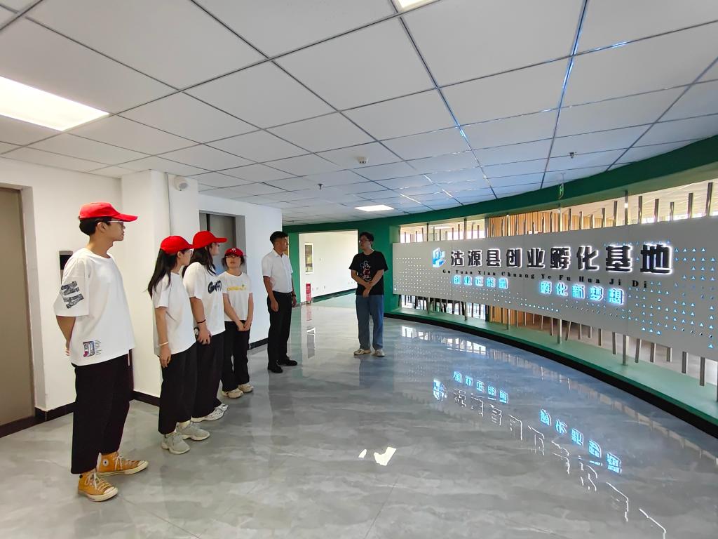 在共青團縣委副書記黃雁斌帶領下,師生6人來到沽源縣創業孵化基地,在創業孵化園工作人員的介紹下,大家參觀了解了創業園區情況,并走訪了入駐企業,對園區的基礎設施、企業分布以及發展規劃有了全面的認識。