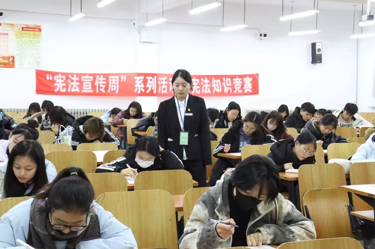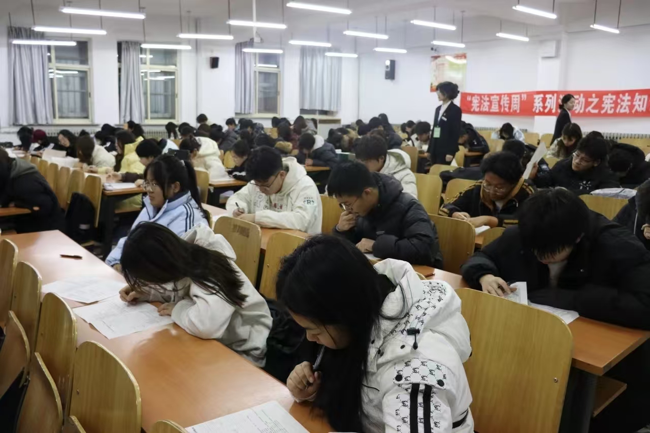 12月4日,經(jīng)法學(xué)院于博學(xué)樓C112開展憲法知識(shí)競賽。學(xué)院學(xué)生會(huì)主席團(tuán)成員許秀、張涵及學(xué)生會(huì)辦公室工作人員擔(dān)任監(jiān)考員,學(xué)院近100名同學(xué)參加了本次競賽。