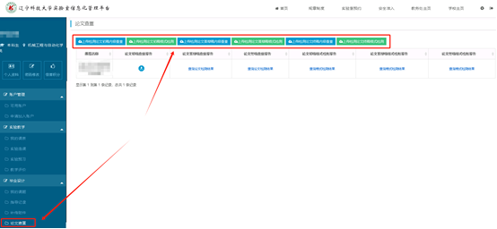 (1)學生登錄遼寧科技大學實驗室信息化管理平臺系統進入論文查重模塊中,檢測內容分別為論文初稿內容查重、論文答辯稿內容查重、論文終稿內容查重,請在規定時間內點擊相應的檢查項目菜單上傳論文并檢測;