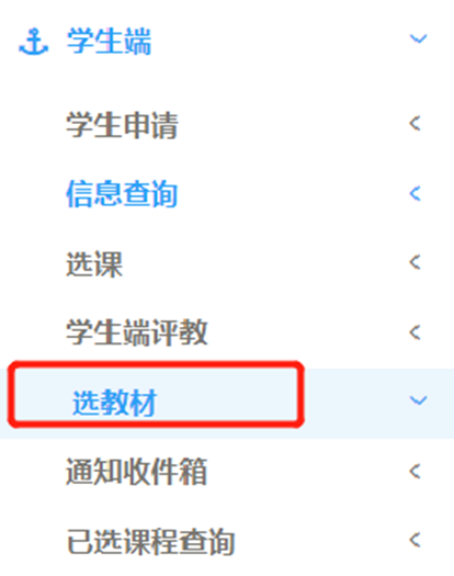 2.登錄后進入“學生端”—“選教材”界面即可進行預訂教材操作。