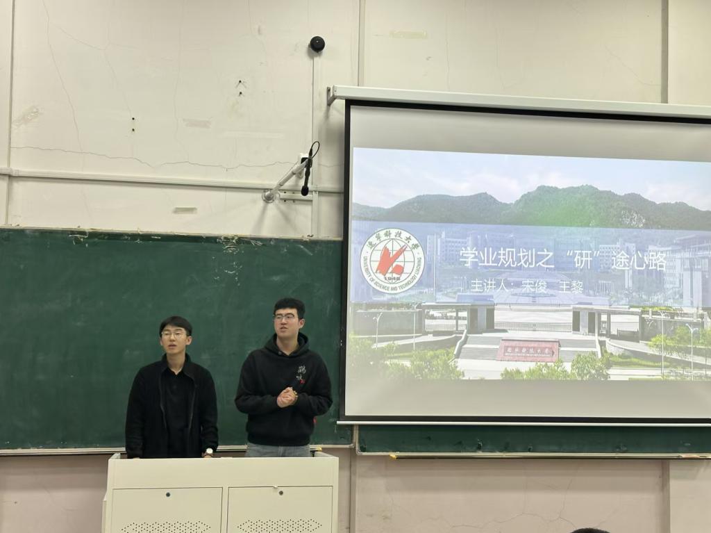 宋俊和王黎則以對話式演講的方式讓現場同學耳目一新,兩人一唱一和,很快使現場氛圍活躍起來。他們以輕松幽默的方式,講述了自己的考研經歷和心得體會,分享了考研的注意事項和復習計劃;以“過來人”的身份告訴“萌新們”早做規劃的重要性,鼓勵大家勇敢逐夢。