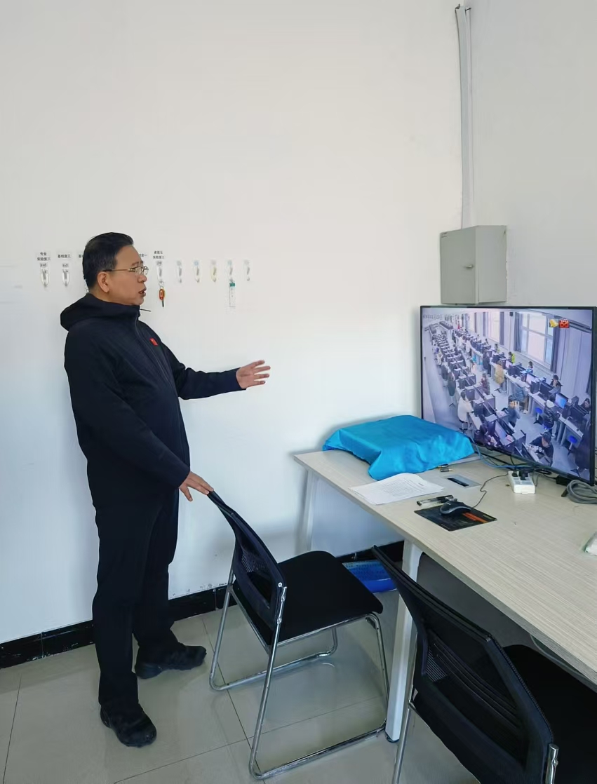 考試期間,校黨委副書記、校長胡軍蒞臨考場指導考試工作,對考試的組織和實施情況進行了細致檢查,并對考試的各項安排及其執行情況給予了充分肯定。