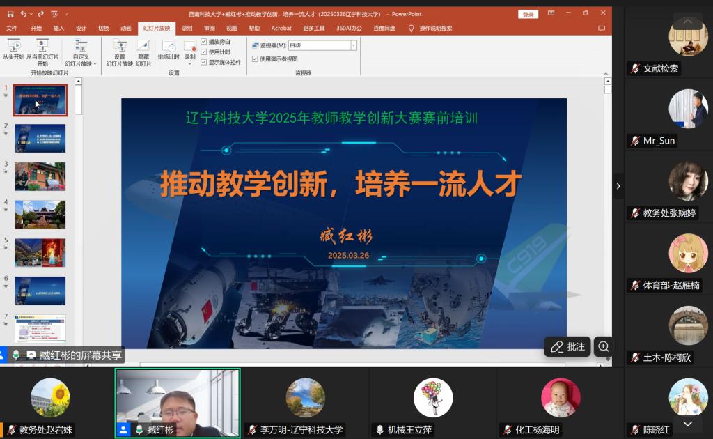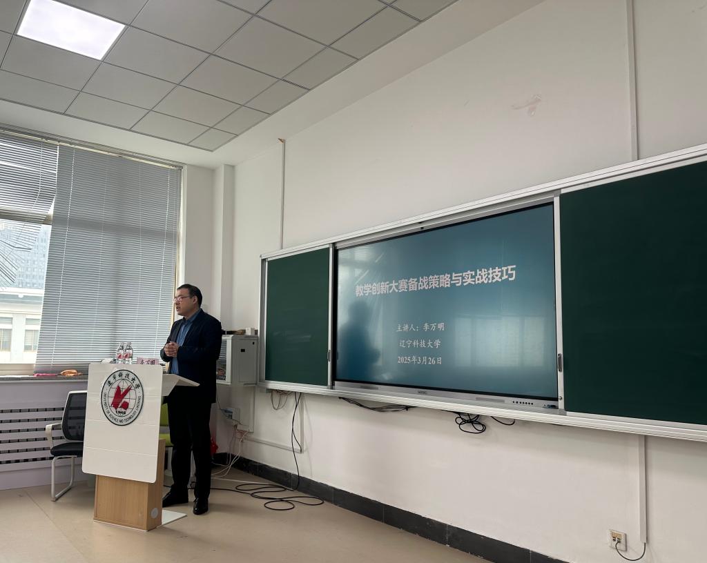 3月26日,遼寧科技大學(xué)教務(wù)處教師教學(xué)發(fā)展中心組織開(kāi)展2025年教師教學(xué)創(chuàng)新大賽賽前培訓(xùn)活動(dòng),邀請(qǐng)學(xué)校材料與冶金學(xué)院李萬(wàn)明教授、西南科技大學(xué)臧紅彬教授,通過(guò)線上、線下方式,分別從不同角度為學(xué)校教師進(jìn)行培訓(xùn),60余名教師報(bào)名參加。