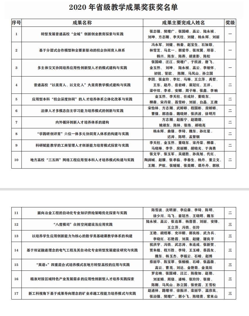 2020年遼寧省普通高等教育(本科)教學(xué)成果獎獲獎名單