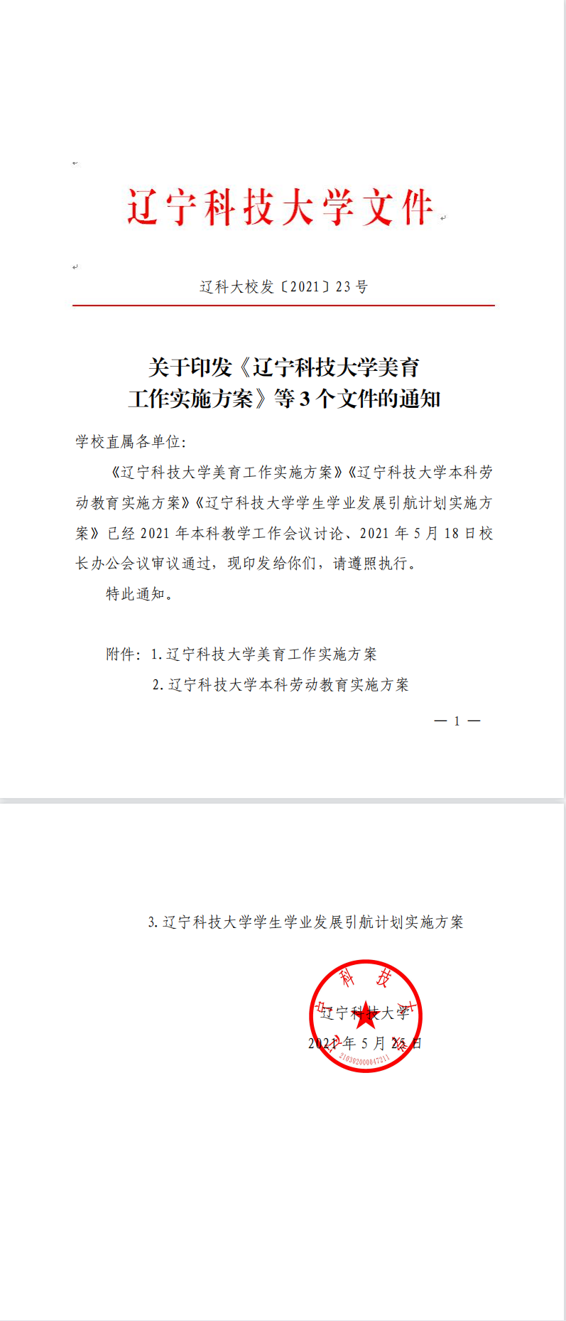 遼科大校發〔2021〕23號:關于印發《遼寧科技大學美育工作實施方案》等3個文件的通知