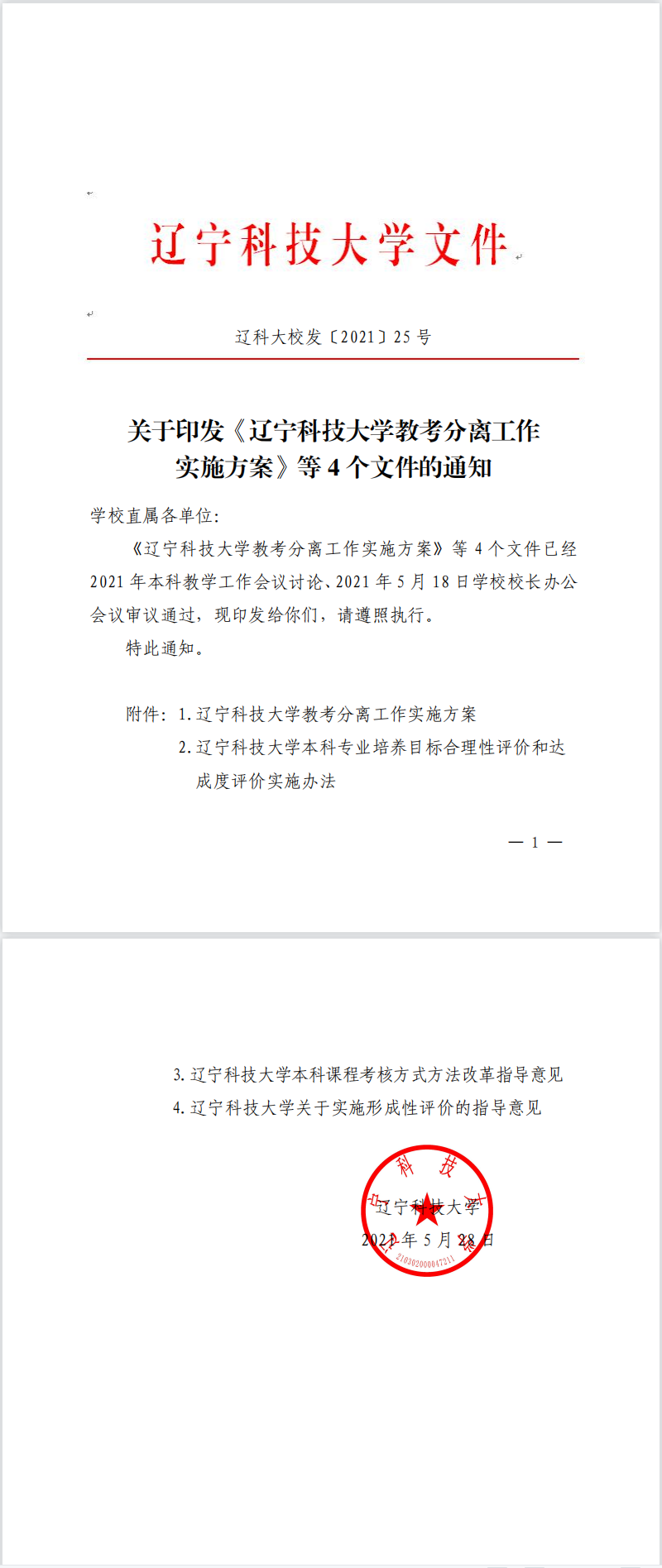 遼科大校發〔2021〕25號:關于印發《遼寧科技大學教考分離工作實施方案》等4個文件的通知