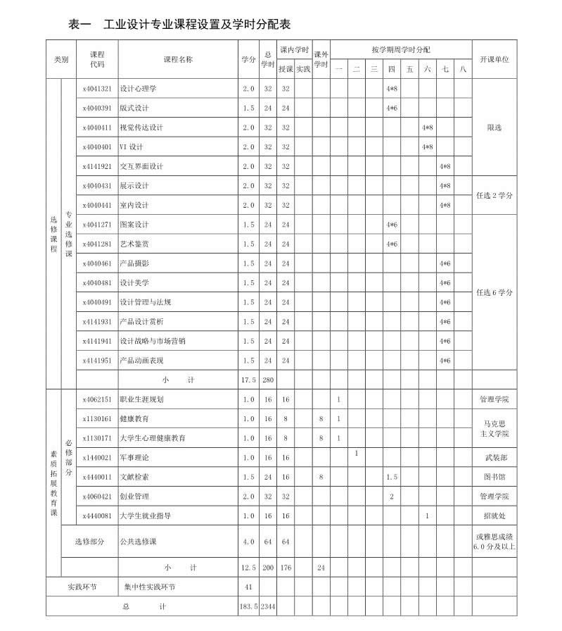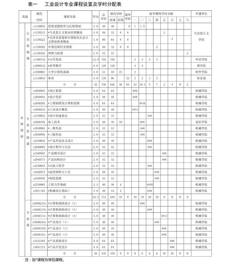 工業設計專業培養方案(080205)(2017版)