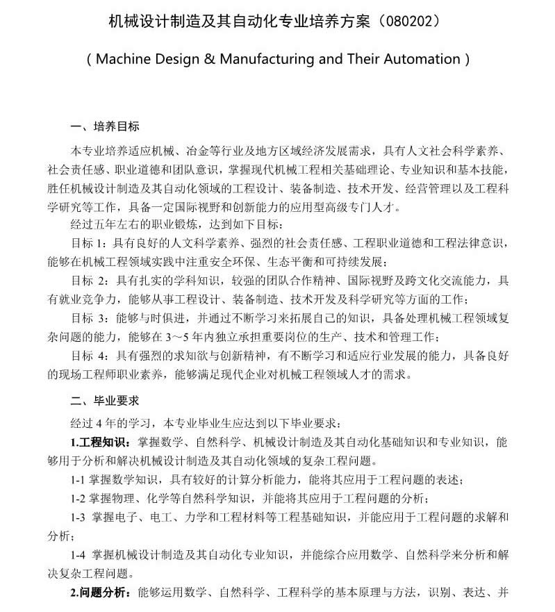 機(jī)械設(shè)計(jì)制造及其自動(dòng)化專業(yè)培養(yǎng)方案.pdf
