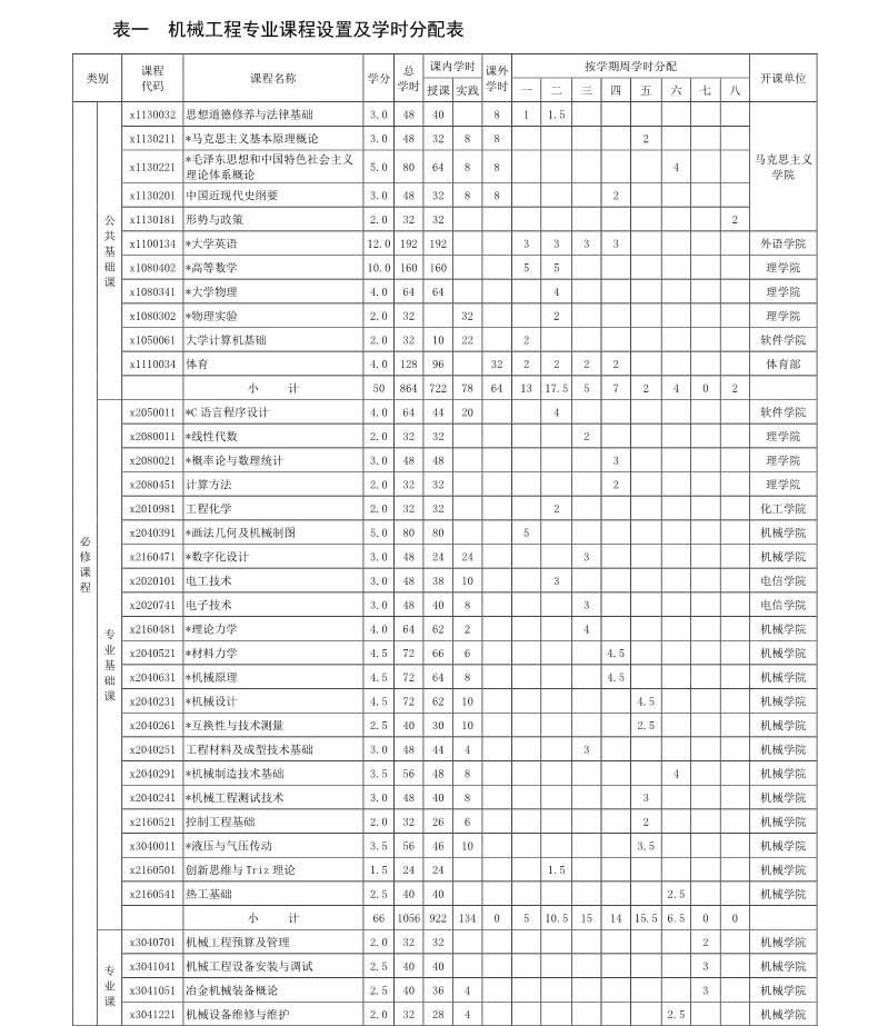 機械工程專業(yè)培養(yǎng)方案(080201)(2017版)