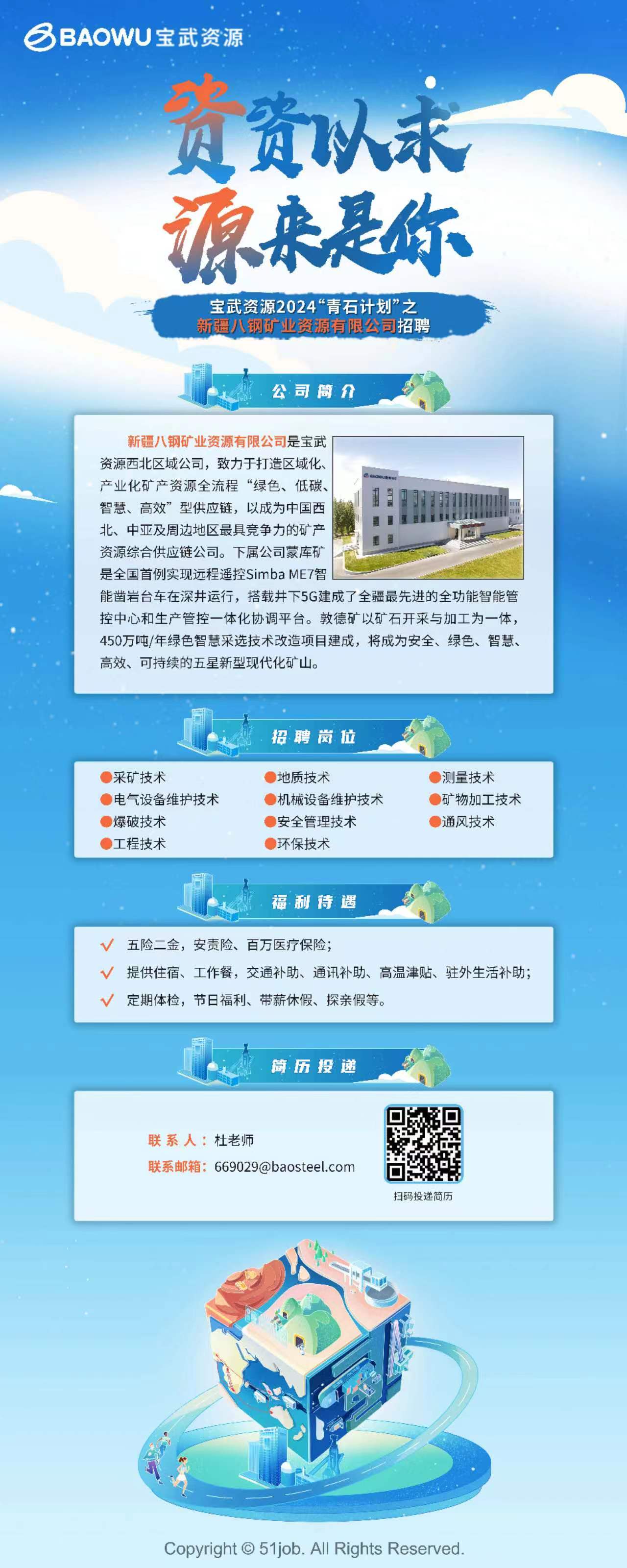 寶武資源2024“青石計劃”之新疆八鋼礦業資源有限公司招聘簡章