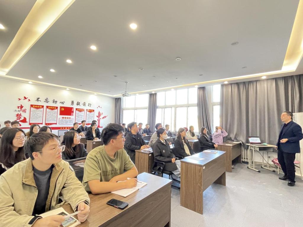 11月12日,礦業工程學院黨委書記陳功慶在博愛樓434會議室為學院全體學生黨員上學習黨的二十屆三中全會精神專題黨課。
