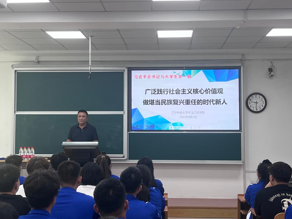 為了更好地學(xué)習(xí)貫徹習(xí)近平新時(shí)代中國(guó)特色社會(huì)主義思想和二十大精神,深入開(kāi)展“習(xí)近平總書(shū)記與大學(xué)生在一起”學(xué)習(xí)分享活動(dòng),9月7日上午,結(jié)合2023級(jí)新生入學(xué)教育,礦業(yè)工程學(xué)院黨委副書(shū)記白龍君于博學(xué)樓A205開(kāi)展題為“廣泛踐行社會(huì)主義核心價(jià)值觀,做堪當(dāng)民族復(fù)興大任的時(shí)代新人”理論宣講,新生班導(dǎo)及2023級(jí)全體新生參加。