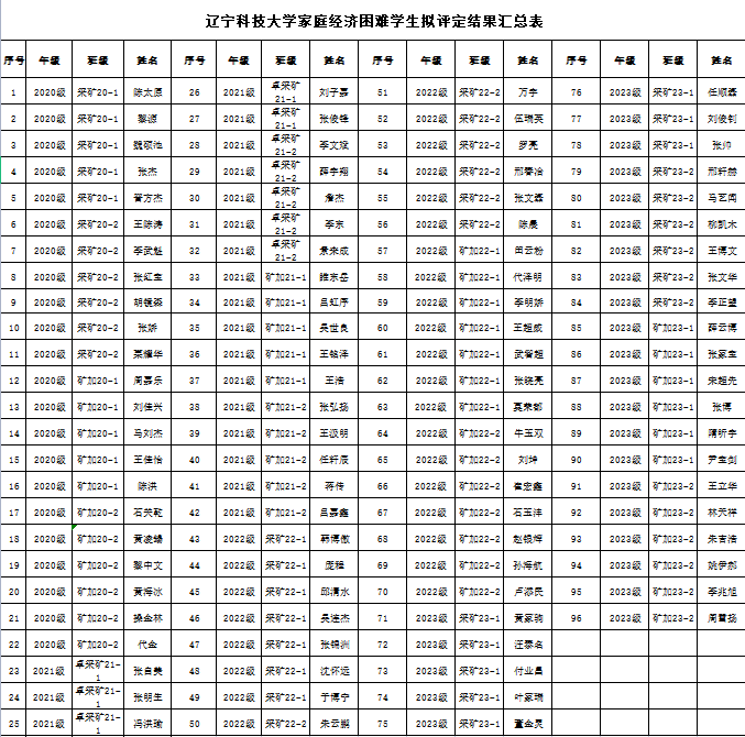 經(jīng)學(xué)生申報(bào)、學(xué)院資助認(rèn)定工作組審核通過,現(xiàn)對(duì)遼寧科技大學(xué)家庭經(jīng)濟(jì)困難學(xué)生資助工作擬定評(píng)審結(jié)果予以公示: