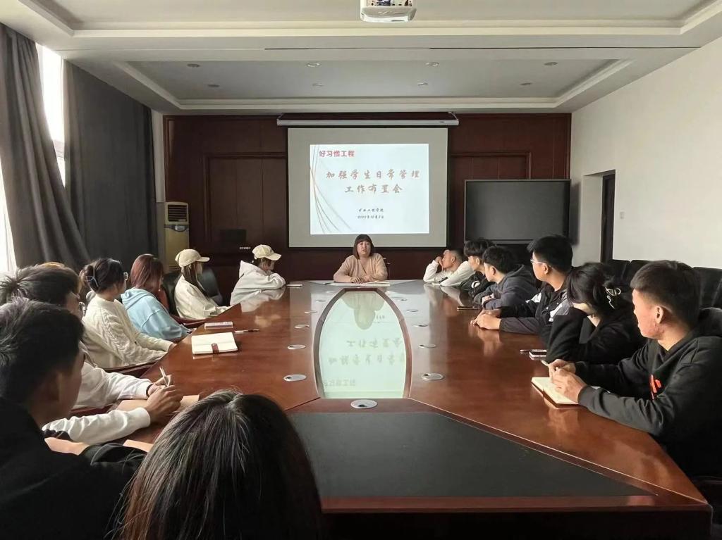 為培養學生良好習慣,提高安全意識,深入落實學校關于加強學生宿舍內務工作的通知,10月8日下午,礦業工程學院于博愛樓430會議室召開加強學生日常管理工作布置會,學辦主任任正琳主持會議,各班級班長副班長參加會議。