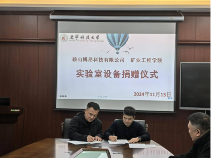 2024年11月13日,礦業(yè)學院舉辦了鞍山博昂科技有限公司實驗室設備捐贈儀式,鞍山博昂科技有限公司董事長譚曉宇、礦業(yè)學院班子成員參加了捐贈儀式。捐贈儀式上,雙方簽訂了捐贈協議,并就未來在科研合作、人才培養(yǎng)等領域的深入交流達成了共識。捐贈儀式結束后,學院指派專人負責接收和保管該設備,并將確保其合理配置和科學使用,將企業(yè)和校友的關愛落到實處。
