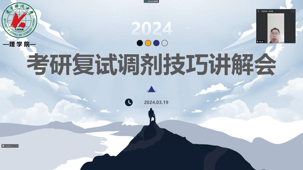 3月19日,遼寧科技大學理學院召開考研調劑技巧講解會,幫助有調劑意向的考生從容應對復試與調劑過程中可能出現的一些問題,助力學生成功上岸。理學院黨委書記張春霞、副院長王健、副書記侯立臣、學辦輔導員及2020級考研學生參會。