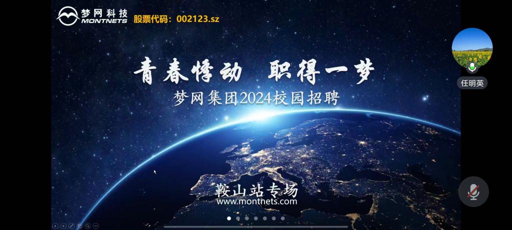 2024年4月24日晚19點,夢網集團于線上開展2024校園招聘會鞍山站專場。此次招聘會由鞍山人力資源部任明英主持,夢網通信集團賈昱介紹,管理學院、經法學院、理學院全體應屆生參加。