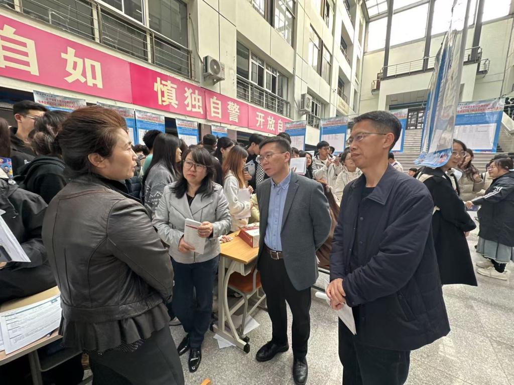 在招聘會現場,理學院的老師們與東方測控有限公司、沈陽信華信教育有限公司和鞍山磐超科技有限公司等多家參會企業進行了深入交流。這些企業覆蓋了多個行業領域,為理學院數學、物理和光電專業的本科生和研究生提供了豐富的就業崗位。通過細致溝通,領導老師們不僅掌握了企業對人才的需求細節、薪酬福利體系等關鍵信息,還向企業全面展示了理學院的教學特色、學科強項以及畢業生所具備的綜合素質和專業能力。雙方圍繞專業建設方向、行業發展趨勢及就業市場需求特點進行了充分的討論。