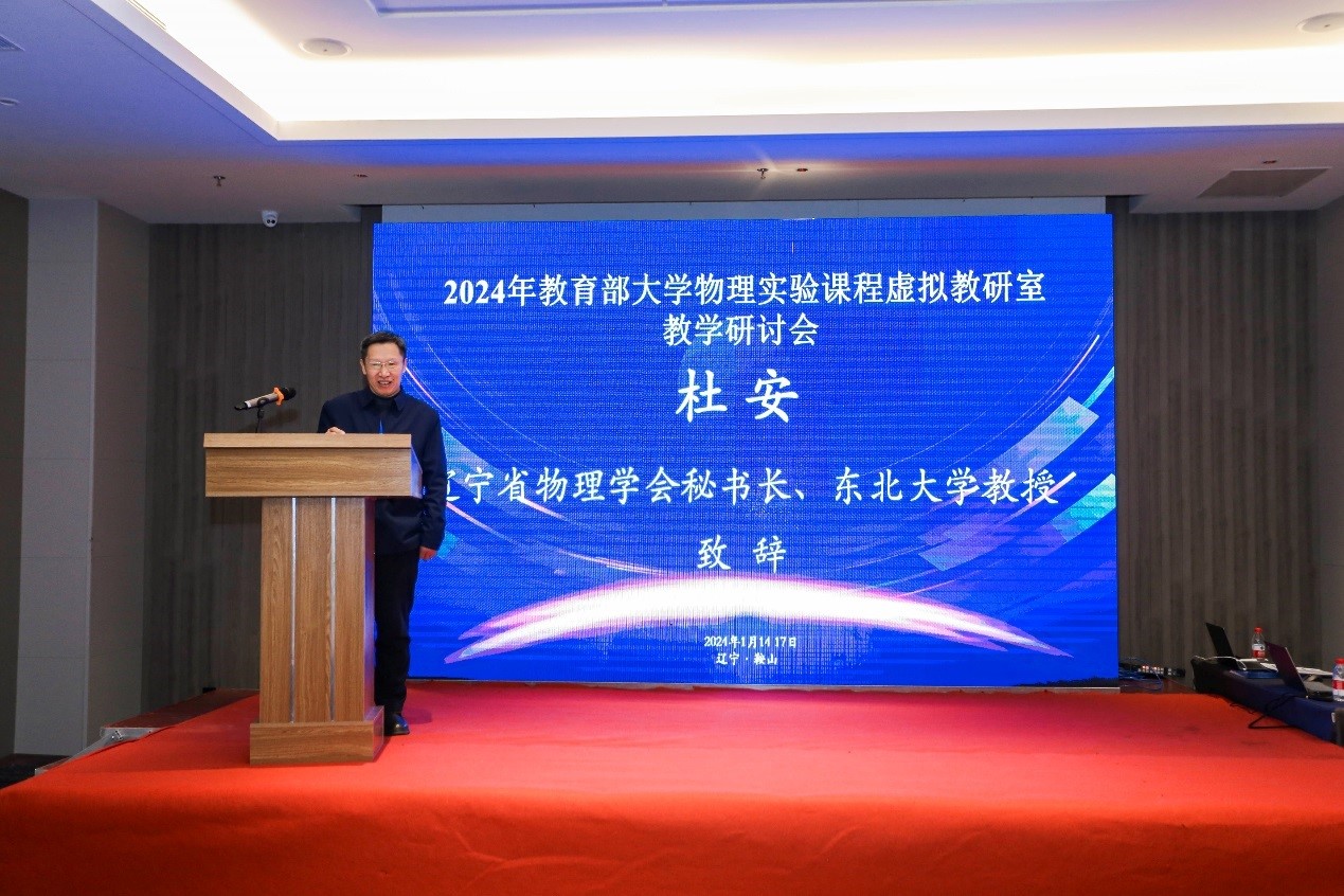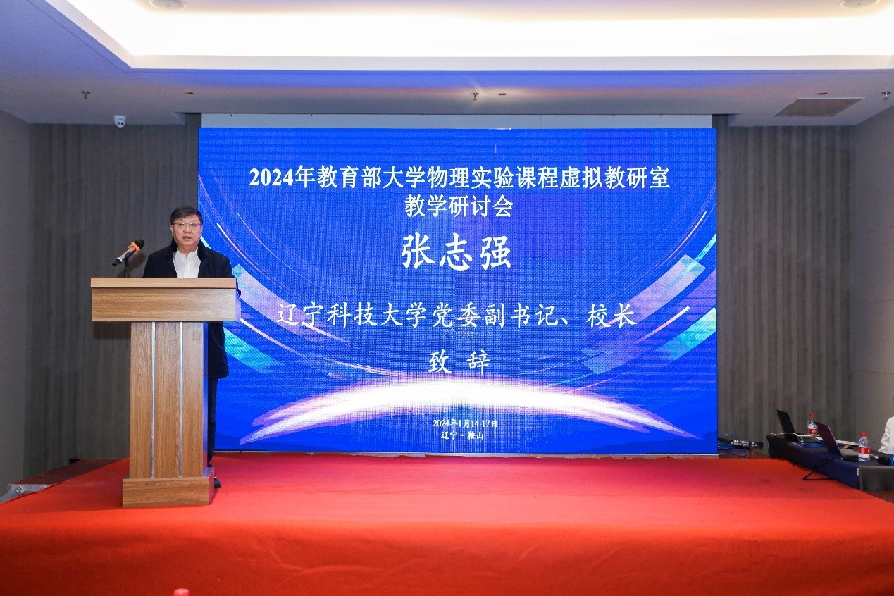 2024年1月14日至17日,由教育部大學物理實驗課程虛擬教研室(東北師范大學)等主辦,遼寧科技大學理學院與東北大學理學院聯合承辦,遼寧省物理學會等協辦的“2024年教育部大學物理實驗課程虛擬教研室教學研討會”在鞍山希爾頓花園酒店淳鋼廳舉行。遼寧省物理學會秘書長東北大學杜安教授出席會議,東北師范大學李金環教授、西南交通大學樊代和教授、高等教育出版社馬天魁主編、東北大學王旗教授、東北師范大學賈艷教授、大連海事大學張映輝教授、沈陽航空航天大學徐世峰教授、遼寧工程技術大學趙龍教授、東北師范大學張巖副教授分別做了學術報告。遼寧科技大學校長張志強教授出席研討會并致歡迎辭。來自全國部分高校的專家、學者,以及我校理學院物理系、實驗中心教師共80余人參會。