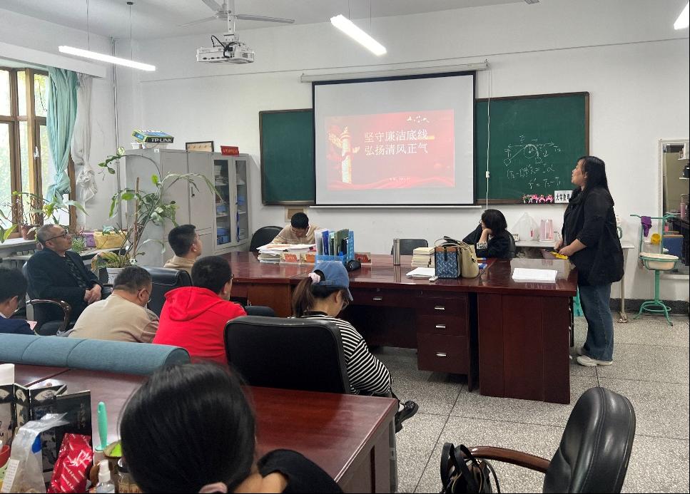會(huì)議第二項(xiàng)由支部紀(jì)檢委員谷月同志進(jìn)行本年度廉政教育,主題為《堅(jiān)守廉政底線、弘揚(yáng)清風(fēng)正氣》。她從老英雄張富清的事跡和周總理“三付飯費(fèi)”的故事開始,為黨員們講解“清正廉潔”的重大意義,如何理解“清正廉潔”的時(shí)代價(jià)值,以及永葆“清正廉潔”的政治本色。