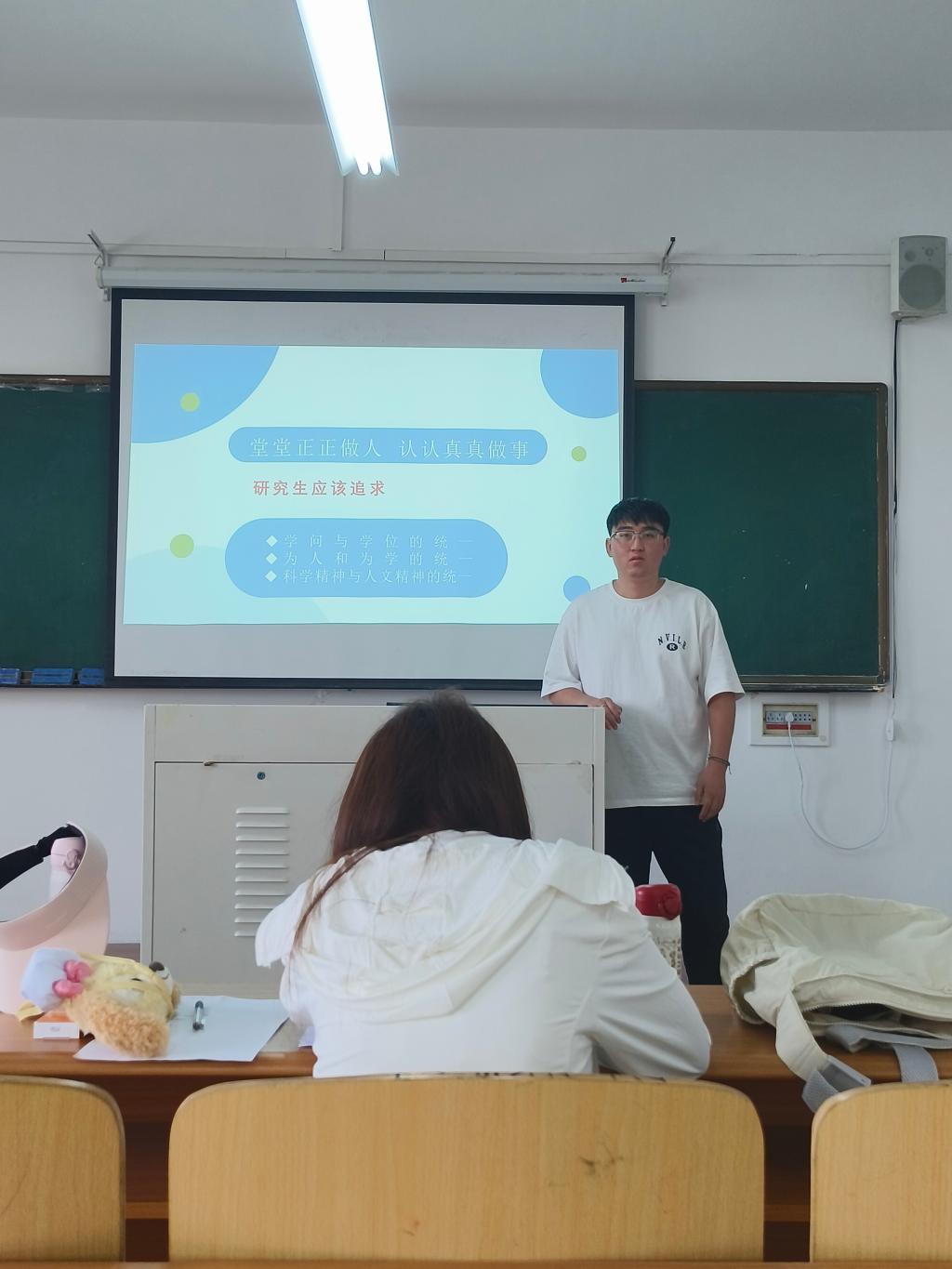 會(huì)上,王穎強(qiáng)調(diào)了學(xué)術(shù)道德的重要性。她提到,每名學(xué)生都應(yīng)嚴(yán)格遵守學(xué)術(shù)道德規(guī)范,這不僅是個(gè)人成長的基石,也是成就學(xué)術(shù)事業(yè)的前提。王穎老師還鼓勵(lì)同學(xué)們?cè)谧非髮W(xué)術(shù)成就的同時(shí),更要注重過程中的誠信和公正。同學(xué)們要在科研實(shí)踐中堅(jiān)特原則,公正對(duì)待數(shù)據(jù),客觀分析結(jié)果,這不僅是為了自己的學(xué)術(shù)生涯,更是為了科研領(lǐng)域的健康發(fā)展。