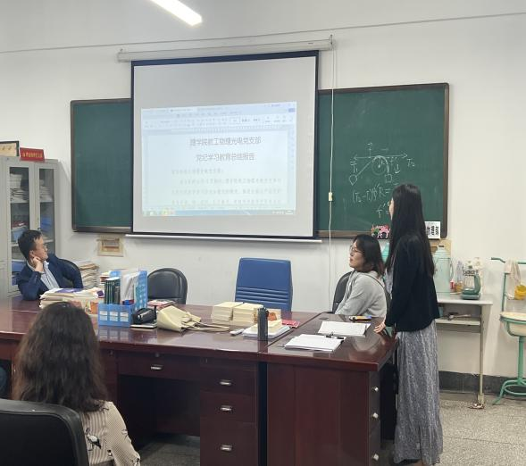 教工物理光電黨支部于9月24日在明賢樓B313舉行會(huì)議。會(huì)議總結(jié)了支部黨紀(jì)學(xué)習(xí)教育的情況,取得的成效以及需要改進(jìn)的問(wèn)題和不足。支部書(shū)記表示黨紀(jì)學(xué)習(xí)教育是一項(xiàng)長(zhǎng)期而艱巨的任務(wù),需要我們教師的自身努力和學(xué)校的重視與支持。通過(guò)不斷強(qiáng)化思想認(rèn)識(shí)、創(chuàng)新學(xué)習(xí)方式和深化學(xué)習(xí)內(nèi)容,讓每一位老師能夠更好地遵守黨紀(jì)國(guó)法,為培養(yǎng)德智體美勞全面發(fā)展的社會(huì)主義建設(shè)者和接班人貢獻(xiàn)自己的力量。