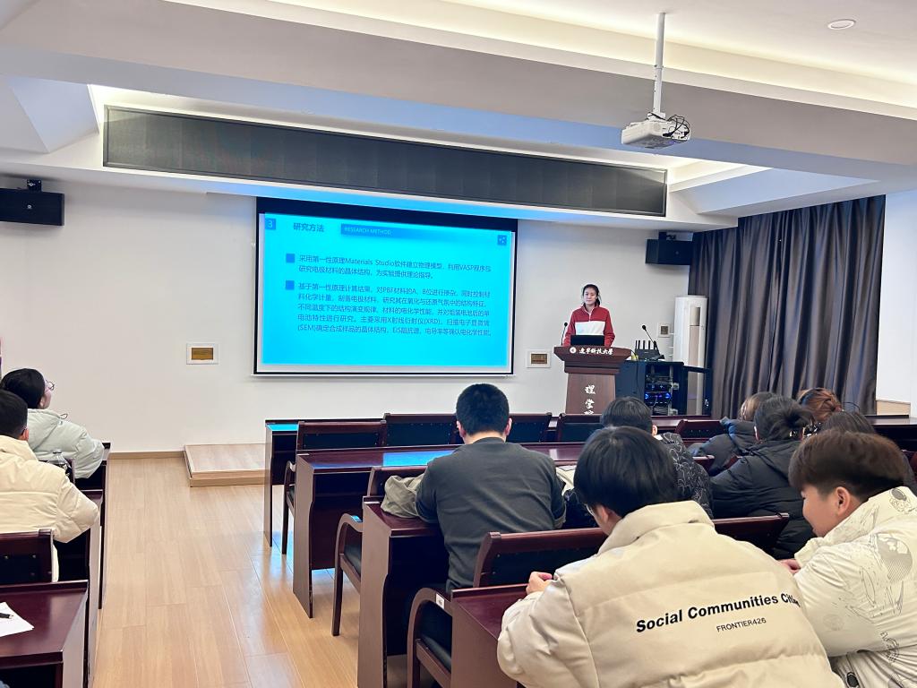 宋如同學以其扎實的研究背景和豐富的學術經驗,為同學們詳細介紹了她的論文“固體氧化物鐵基電極材料的制備與性能研究”的寫作過程,分享了科研實驗操作、實驗設計與數據分析的技巧,幫助同學們建立起科研工作的基本框架。