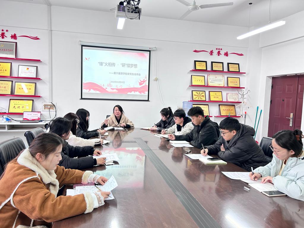 3月5日下午,理學院在明賢樓B311會議室召開了第六屆研究生會工作例會。會議由理學院研究生學生會執行主席唐思磊主持,學院黨委書記張春霞、24級研究生班主任萬晴晴老師出席會議。
