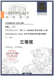 6月25日-27日第二十一屆全國(guó)大學(xué)生機(jī)器人大賽RoboMaster 2022機(jī)甲大師超級(jí)對(duì)抗賽東部賽區(qū)賽在江蘇省常州市武進(jìn)體育館舉行。我校COD戰(zhàn)隊(duì)獲得了東部賽區(qū)二等獎(jiǎng)、全國(guó)三等獎(jiǎng),其中步兵機(jī)器人、工程采礦機(jī)器人獲東部賽區(qū)一等獎(jiǎng),全國(guó)二等獎(jiǎng)。