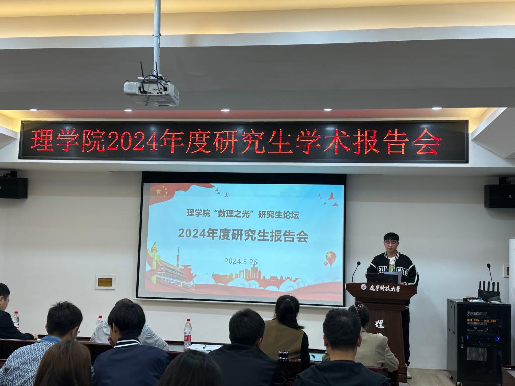 為弘揚(yáng)科學(xué)家精神,提升研究生科研能力和綜合素質(zhì)。5月26日上午,理學(xué)院于明賢樓B315會(huì)議室召開“數(shù)理之光”研究生學(xué)術(shù)報(bào)告會(huì)。本次報(bào)告會(huì)由理學(xué)院研究生會(huì)執(zhí)行主席陳陽(yáng)主持,理學(xué)院副院長(zhǎng)王健、老師盧飛龍、齊淑彥、王思涵等擔(dān)任評(píng)委。