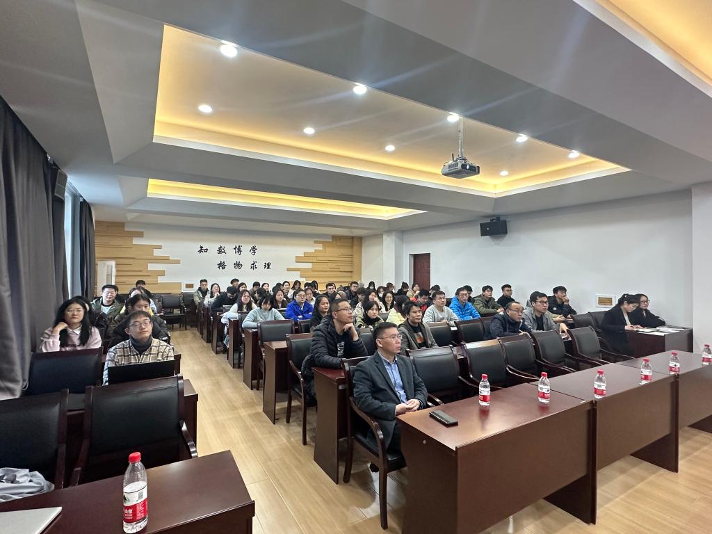徐守軍教授在報告中詳細講解了部分立方體的基本概念、立方多項式的定義及其計算方法,以及交叉圖團多項式的相關理論。然后介紹了團隊的最新研究成果。最后徐教授還指出了立方多項式和團多項式的定義及其在圖論中的應用,清晰地展示了這些數學工具的實際意義和應用價值。報告結束后,徐教授與在場師生進行了熱烈的討論與交流,開闊了師生們的學術視野,大家受益匪淺。