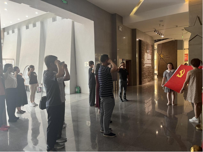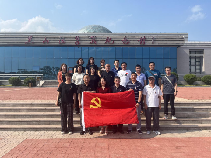 慰問結束后,聯合慰問小組一行人前往黑山阻擊戰紀念館參觀學習,開展“忠誠固根本,建功新突破”主題黨日活動。黑山阻擊戰紀念館位于“101”高地遺址的西南側,是一座集收藏、保護、展示、研究黑山阻擊戰戰史于一體的對外開放的專題紀念館。通過多媒體畫面、照片、圖片、文物、史料、景觀復原等形式,大家全面、真實、準確、系統地再現了當年阻擊戰驚天動地、泣鬼神的偉大壯舉。參觀結束后,全體黨員面向黨旗莊嚴宣誓,重溫入黨誓詞。