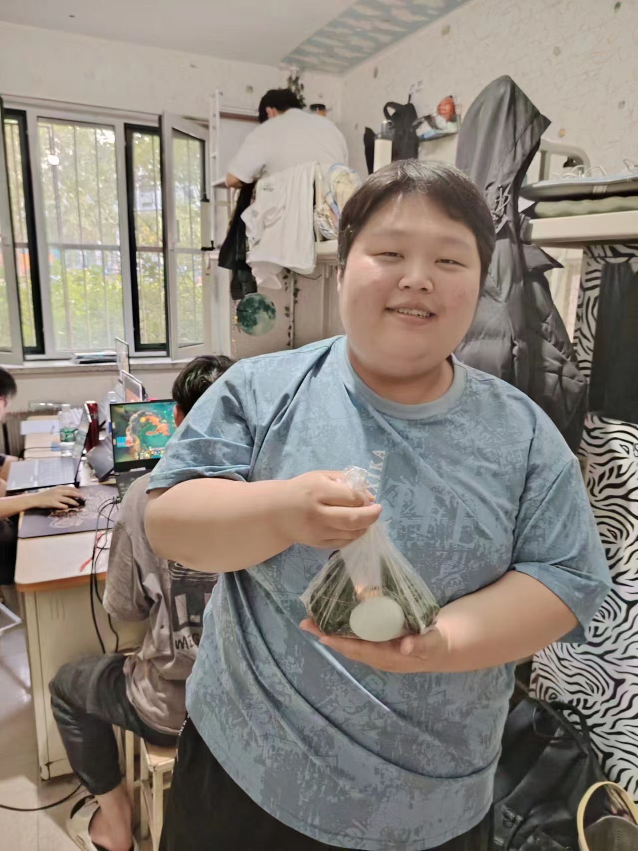 活動當天,學生會干部們早早地準備好了新鮮的粽子和雞蛋。每一顆粽子都蘊含著濃濃的節日氣氛和深深的祝福,每一個雞蛋都象征著健康與希望。他們帶著這些滿載心意的禮物,走進了宿舍,走進了每一位貧困生的心田。
