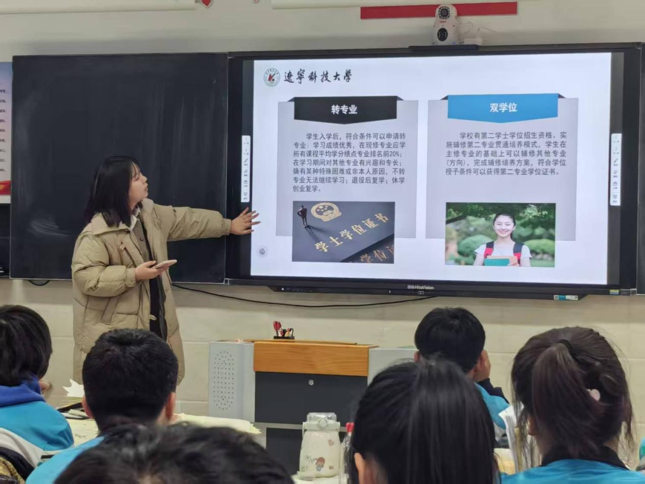 活動(dòng)期間,四位同學(xué)在各自母校老師的熱情協(xié)助下,精心籌備了一系列內(nèi)容翔實(shí)、形式多樣的宣講活動(dòng)。他們不僅詳細(xì)介紹了各自所在大學(xué)的學(xué)習(xí)環(huán)境,包括圖書館資源、實(shí)驗(yàn)室設(shè)施、學(xué)術(shù)講座與科研項(xiàng)目等,讓學(xué)弟學(xué)妹們對(duì)高等教育的廣闊天地有了更加直觀的認(rèn)識(shí),還生動(dòng)描繪了大學(xué)的生活場(chǎng)景,從豐富多彩的社團(tuán)活動(dòng)到溫馨和諧的宿舍文化,每一個(gè)細(xì)節(jié)都旨在激發(fā)同學(xué)們對(duì)大學(xué)生活的無限憧憬。