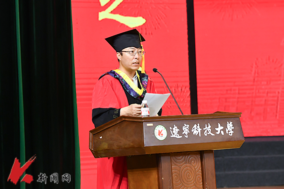胡軍代表全校師生員工向即將揚帆起航的全體畢業生致以熱烈的祝賀。胡軍說,幾年前,你們選擇了遼科大這座鑄就夢想的熔爐,在這里學習知識、磨礪意志、結交朋友、塑造自我;你們把最美好的青春留在了這里,用勤勉與智慧在青春答卷上鐫刻了屬于遼科大人的時代印記。臨別在即,胡軍勉勵畢業生們要牢記“打鐵還需自身硬”的人生哲理,并向大家提出三點期許。