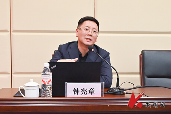 鐘憲章以“《習近平談治國理政》第五卷導讀”為主題,圍繞“《習近平談治國理政》第一卷至第五卷是一個整體”“《習近平談治國理政》第五卷的時代背景”“《習近平談治國理政》第五卷的基本內容”“《習近平談治國理政》第五卷的學習方法”四個方面,緊密結合時代背景和形勢任務,深入解讀了習近平總書記提出的一系列新思想新觀點新論斷,幫助廣大黨員干部用黨的創新理論最新成果凝心鑄魂,及時跟進、深刻領悟其中的原創性理論和原創性貢獻。