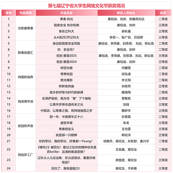 近日,遼寧省高校網絡思想政治工作中心公布第七屆遼寧省大學生網絡文化節和高校網絡教育優秀作品推選展示活動評選結果,遼寧科技大學共有24項作品在大學生網絡文化節中獲獎,獲獎數量全省第六,8項作品在網絡教育優秀作品推選展示活動中獲獎,獲獎數量全省第二。