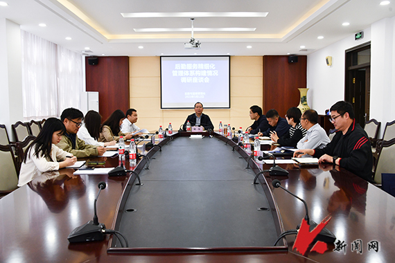 會上,胡軍聽取了后勤領導班子成員及各科室負責人的工作匯報,并與與會人員就后勤服務精細化管理體系的構建現狀、存在的問題和解決措施進行了深入交流。