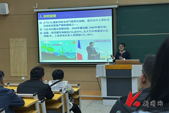 報告中,白敏冬教授介紹了海洋微藻羥基自由基固碳-儲碳技術研究進展及其作為重要的減緩氣候變化的方法的大背景。海洋微藻羥基自由基固碳-儲碳技術不僅可以提高海洋微藻的固碳效率,還可以為減緩氣候變化提供一種新的、可持續的解決方案。報告會后,白敏冬教授與研究生就微藻絮凝沉降海底固碳的機理和如何開展研究等問題進行深入交流和探討。