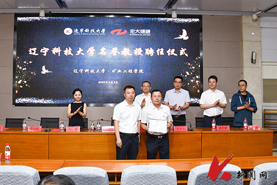 報告開始前,遼科大黨委常委、副校長胡軍與鄭明釵董事長及鞍礦爆破公司高層領導進行會談,并對宏大爆破和鞍礦爆破一直以來給予遼科大礦業學院的支持表示衷心感謝,表達了學校與兩家公司展開更深、更廣的合作信心。礦業學院黨委書記陳功慶向鄭明釵董事長頒發了名譽教授聘書。