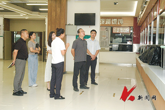 胡軍一行先后走訪了新生寢室、宿舍自助浴池及熱水間建設場地、墻面粉刷及衛生間改造場地、綠茵餐廳、大學生浴池、超市、桃園餐廳、新1舍浴池、快遞及周邊商戶、校門診部、龍源學生生活區和科技園等地,對關乎師生工作、學習和生活的每一個細節,都仔細詢問和詳細了解,全面督查了新生宿舍改造、學生宿舍自助浴室、校園綠化建設、餐廳食品衛生安全、醫療服務保障、快遞服務保障、電表安裝等情況,并聽取了相關負責人就秋季開學服務保障等工作的匯報。