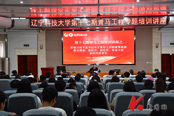 11月23日,遼寧科技大學黨委副書記孫曉華教授在圖書館報告廳為第十七期青馬工程學員作題為《貫徹習近平總書記關于青年工作的重要思想 做有理想、敢擔當、能吃苦、肯奮斗的新時代好青年》專題培訓講座。校院團干部與150名青馬學員共同聆聽講座。