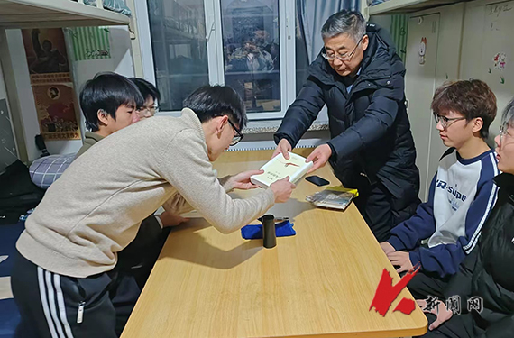 在5舍226寢室,王錫鋼在深入了解新生學習、生活等情況后,向他們介紹了學校的建設和發展情況,解讀了畢業條件和學位授予的相關政策,分享了如何適應大學學習生活的經驗,對學生進行了理想信念、職業生涯規劃和養成教育。在征求學生對學校的意見建議后,王錫鋼就學生關心的學習場所、傳染病防治和宿舍面積緊張等問題進行了耐心細致地解答。他說,寢室如家,良好的寢風對于寢室成員的學習和成長至關重要,每位寢室成員要養成健康文明的生活習慣,努力營造積極拼搏向上的寢室氛圍。王錫鋼向寢室同學贈書,鼓勵他們珍惜青春時光,努力學習專業知識,增強科研動手能力,不負時代,不負韶華,立志做有理想、敢擔當、能吃苦、肯奮斗的新時代好青年。
