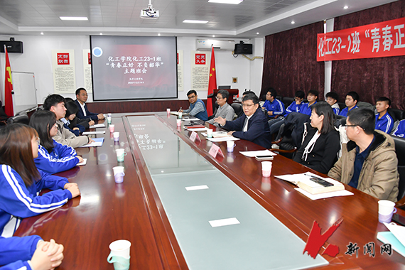 12月14日,遼寧科技大學(xué)校長(zhǎng)張志強(qiáng)深入對(duì)接班級(jí)化工2023.1班走訪(fǎng),參加班級(jí)召開(kāi)的“青春正好 不負(fù)韶華”主題班會(huì)。發(fā)展規(guī)劃處負(fù)責(zé)同志、化學(xué)工程學(xué)院領(lǐng)導(dǎo)班子成員、輔導(dǎo)員與班級(jí)全體學(xué)生一同參加班會(huì)。
